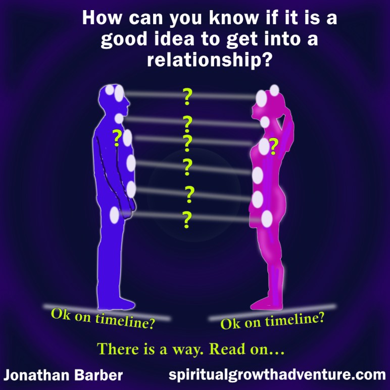 In a relationship, a good heart is an essential, so it needs to be large enough and bright enough. The other centres need to be clean, and being bright helps. Cordings need to be bright, vibrant and loving. These are the ingredients of a good start at least, and the karma will show up in the path, in the timeline from then on. (What’s that about a Golden Pathway timeline that’s mentioned elsewhere in the blog?)