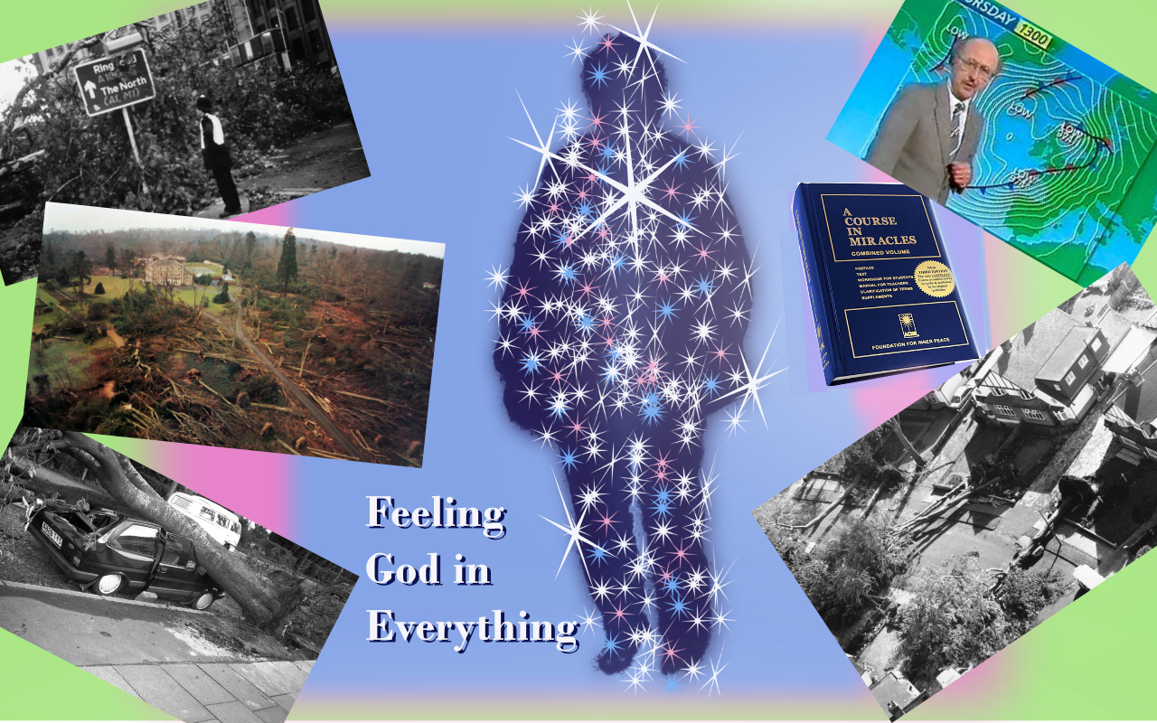 It was October 15th 1987. Several months previously I was a crashed party-animal in crisis. Now I was into spirituality and whatever helped me move on into what looked more and more like a wonderful world. I had been reading and working with a book called A Course In Miracles which contained a lesson for every day of the year. Today’s lesson was number 29, “God is in everything I see”. This made sense to me as God is everywhere. So I would look at a chair, and say to myself, “God is in this chair”. I would look at the floor and say “God is in this floor”, and so on. It all seemed quite easy and a bit of fun.