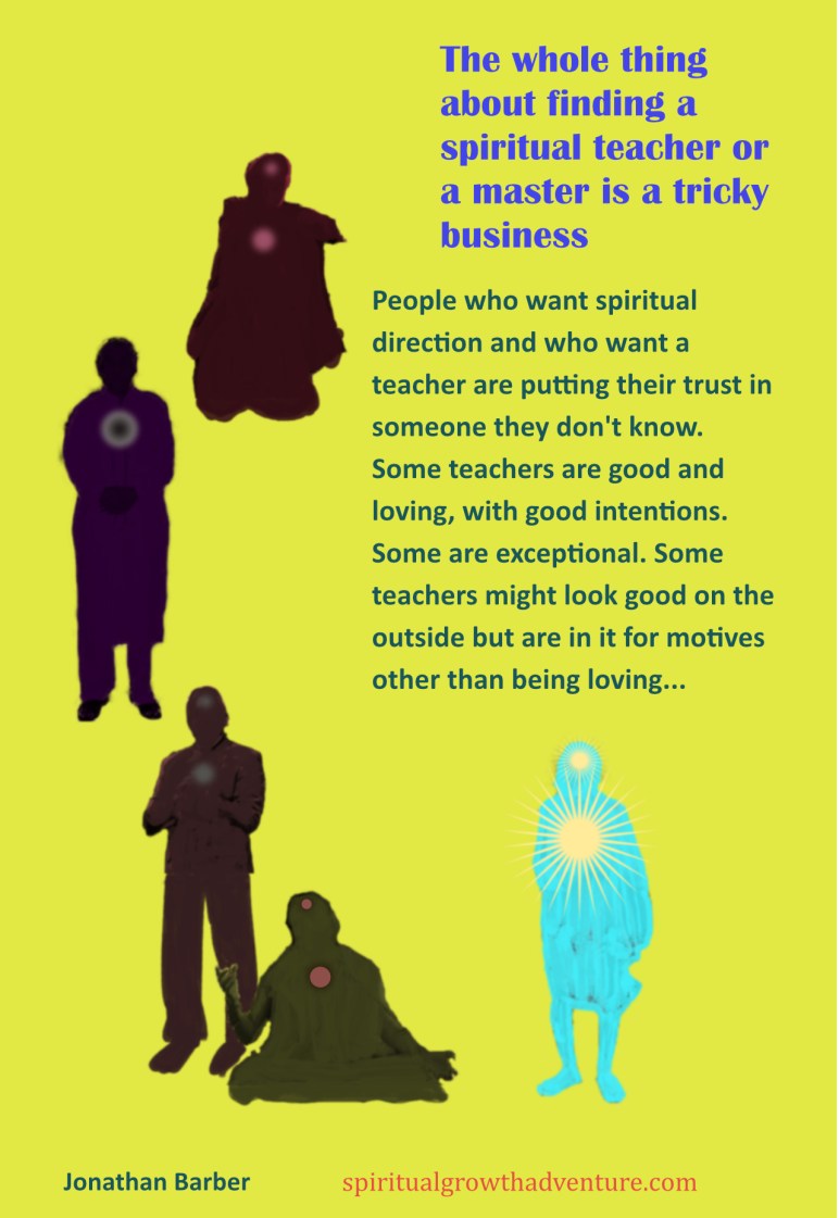 The whole thing about finding a spiritual teacher or a master is a tricky business. People who want spiritual direction and who want a teacher are putting their trust in someone they don’t know, and as learners, they are likely not to be able to know what to look for in a teacher. Some teachers are good and loving, with good intentions. Some teachers are in it for motives other than being loving and compassionate to the people who have put their faith in them. It might be for power, for money, for control, for sex, or to boost their own ego. Or the person could be overshadowed by a being or entity on the inner planes who sounds plausible, but is actually twisted and bringing through energy that damages or ensnares and controls. (I experienced this with some people pretending to teach about angels. I wrote about it on my blog. I did get out of the situation when I realized I was feeling wrong.)